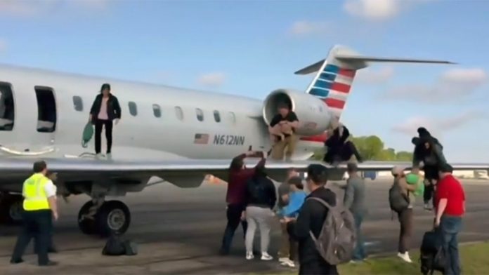 Prior to takeoff, an American Airlines flight 3023 headed to Miami, Florida, was evacuated while at Denver International Airport in July. Above, a scene from that incident. (Instagram/@highlymigratoryfishing)