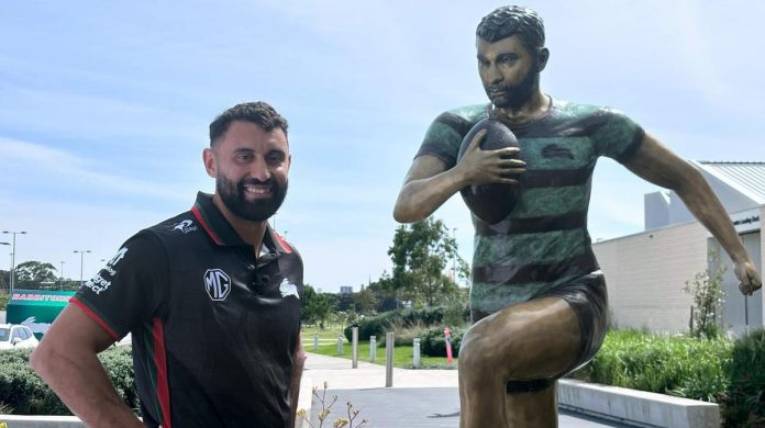 Fresh off breaking Ken Irvine’s mark on Friday night, Johnston on Monday had a statue of him unveiled at Rabbitohs headquarters.