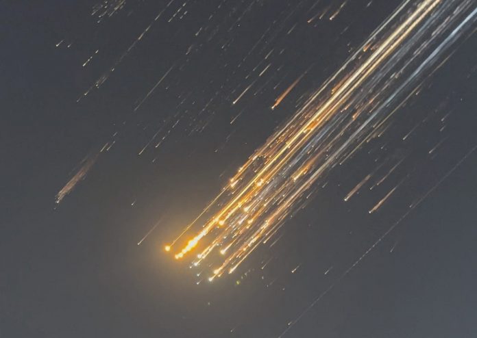 Orange balls of light fly across the sky as debris from a SpaceX rocket launched in Texas is spotted over Turks and Caicos Islands, January 16, 2025 in this screen grab obtained from social media video.