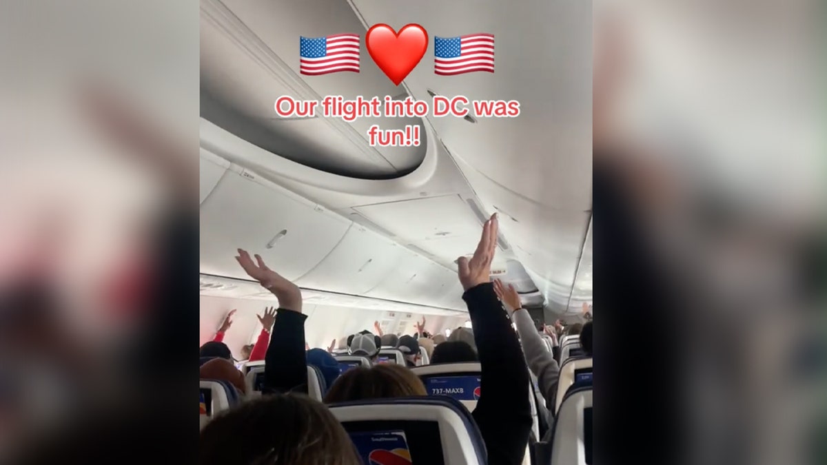 Flight passengers aboard a Southwest flight joined in on the fun by performing the “Y.M.C.A.” choreography before touching down in Washington, D.C., for the inauguration of President Trump. (Sarah Rogers/@sarahrogers44_)