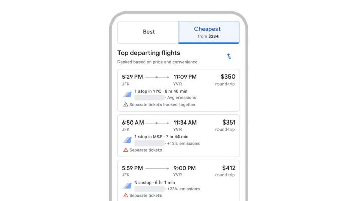 Travelers may find “creative itineraries” under Google Flights’ new tab, such as “longer layovers, self-transfers or purchasing different legs of the trip through multiple airlines or booking sites,” according to the company’s press release.