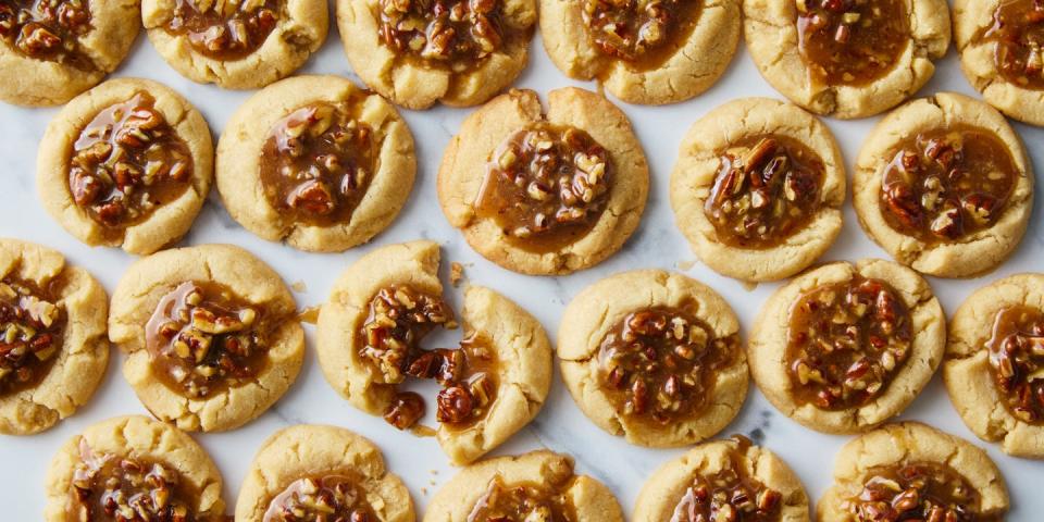 thumbprint cookies filled with pecan pie filling