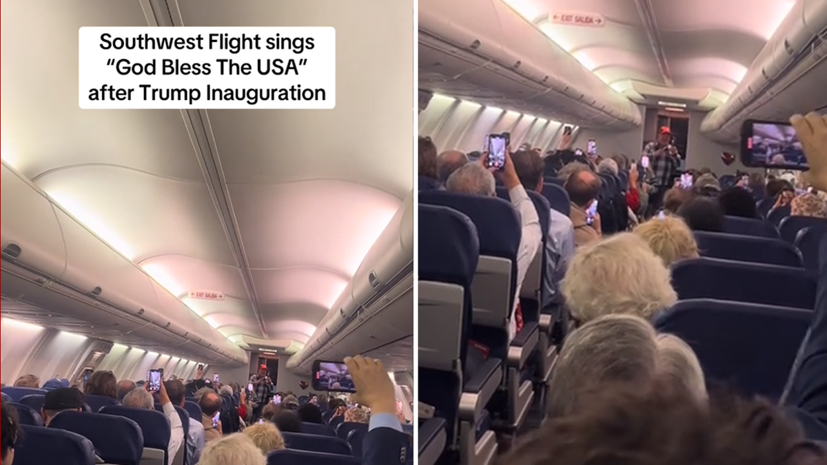 An airline passenger posted a video of a veteran singing “God Bless the USA” on a Southwest flight leaving President Donald Trump’s inauguration. (Matt Oakley)
