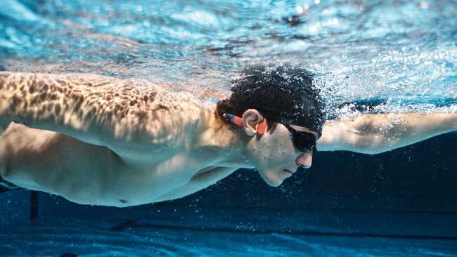 That means swimmers can enjoy music without blocking their ears — and without worrying about damaging their headphones mid-lap.