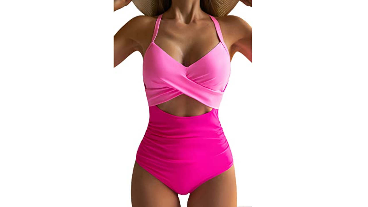Have you ever seen a tummy-control swimsuit this chic? Ruching along the sides creates a slimming effect, and a criss-cross neckline and sexy cutout give it a fashion-forward feel. It comes in 30 colors and sizes up to 22 Plus. More than 8,000 five-star reviews back it up.