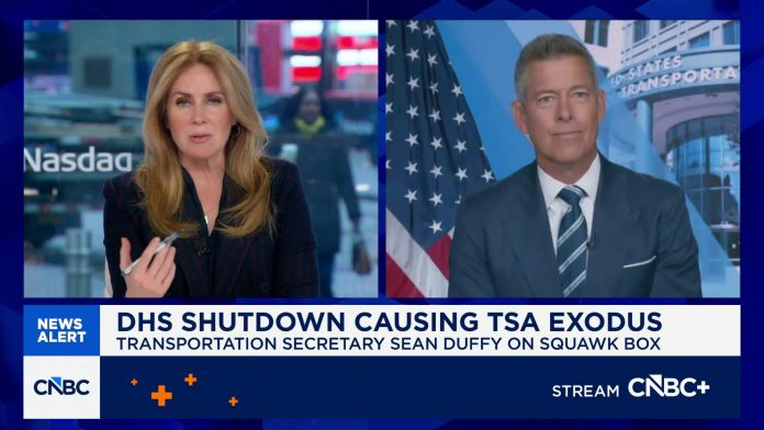 Transportation Secretary Sean Duffy joins ‘Squawk Box’ to discuss the state of DHS shutdown, impact of TSA staffing shortages on air travel, and more.